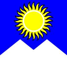 Azure a Sun in splendour Or and a base dancetty Argent.