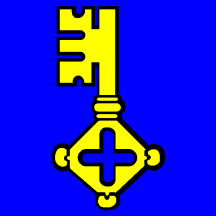 Azure a letter L Or surmounted by an arrow of the same palewise with point in chief.