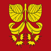 In red a hanging yellow linden branch with leaves (2) and blossoms (2).