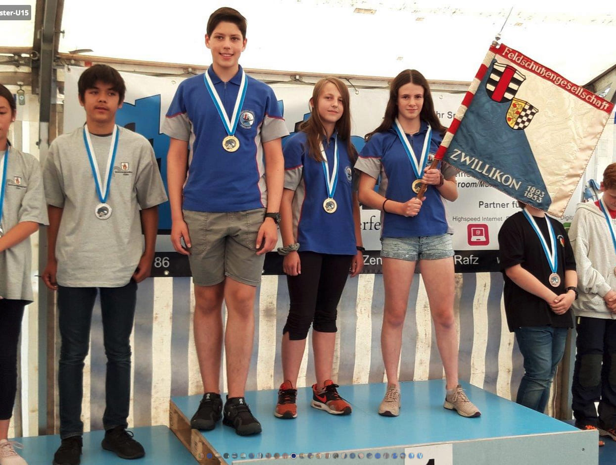 The shooting club Schützen Rafzerfeld (website) was formed in 2020 by the merger of the clubs Militärschützenverein Wasterkingen, Schützenverein Wil and Schützengesellschaft Rafz. The logo shows the communal emblems of Hüntwangen, Rafz, Wasterkingen and Wil.