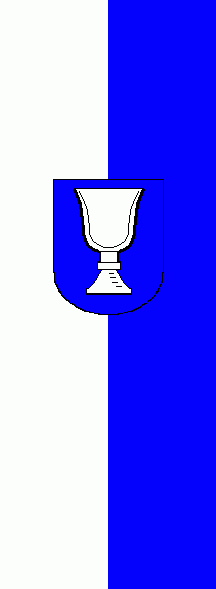 It is a white - blue vertical bicolour. The coat of arms is shifted to the top.