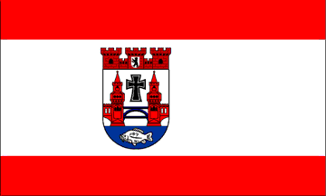 A flag and coat-of-arms for the new district Friedrichshain-Kreuzberg in Berlin were approved by the Department of the Interior of Berlin (Senatsinnenverwaltung von Berlin) on 29 Jan 2002. The new coat-of-arms of Friedrichshain-Kreuzberg unites the former coats-of-arms of the formerly separate districts of Friedrichshain and Kreuzberg.