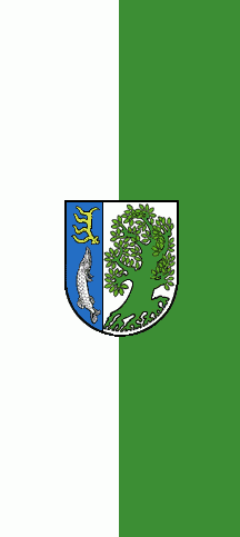 It is a green-white-green vertical triband with ratio of stripes approx. 1:3:1. The coat of arms is in the middle of the white stripe.