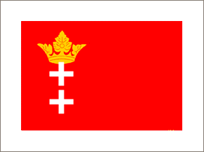 Similar to above image. Ratio 14:19. Width of the white border is 1/7 of the hoist length. Caption: Dienst nur für Lotsenrufsignal i.e. "used only for calling a pilot." I guess pilot vessels should use the state ensign. Source: Neubecker 1992 [neu92], p. 43 (in the "Supplements" section).