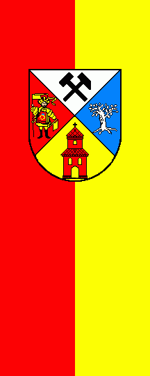 It is a red-yellow vertical bicolour. The coat of arms is shifted towards the top.