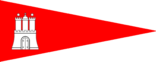 The well-known civil flag showing a white castle with three towers on red background. This is basically the Hamburg flag. It is not only used as a civil flag (and was historically used as civil ensign as well),