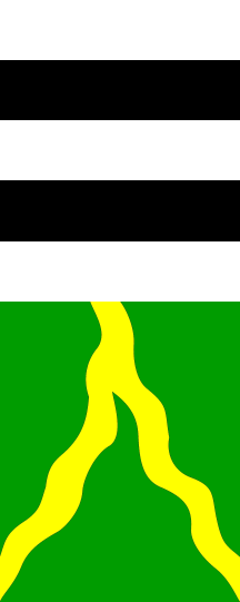 It is a yellow-blue vertical bicolour. The coat of arms is shifted to the top.