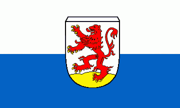 It is a white-blue vertical bicolour. The coat of arms is shifted towards the top. Under the shield is an black inscription "MARKT" (above) and "KLEINHEUBACH" (beneath embowed).