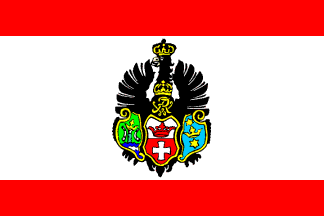 Königsberg was the main harbour of Brandenburg and even if many charts report the striped flag as the flag of Koenigsberg, this was a Brandenburg ensign. Königsberg had a flag —the white-red with crown and cross— which was never used at sea, and a true merchant ensign for the town never existed. The stripes on this flag are represented in number of six or seven, sometimes blue and sometimes black, with or without the shield with the [red] eagle of Brandenburg or the [black] eagle of Prussia).