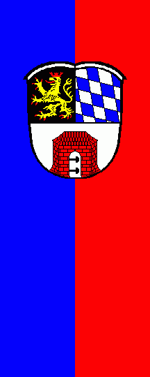 It is a blue-red vertical bicolour. The coat of arms is shifted towards the top.