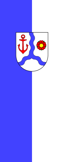 It is a green-white vertical bicolour with arms shifted to top and above in an annexed white rectangle with black edges a black inscription "NITTEL".