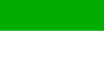 It is a green-white horizontal bicolour with the coat of arms in the canton complete (see left image above) or without shield (see right image above).