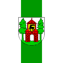 Ilsenburg is a small town in the Harz mountains, part of Wernigerode county. The slightly unusual flag was introduced in 1992, it is described as almost square with vertical stripes (white-dark green-white) and the arms in the centre. Source: Günther 1996a.