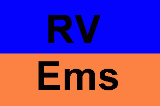 The pennant was horizontally parted of blue and orange with a centred black inscription "RV" above and "Ems" below.