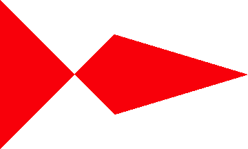 White pennant with two blue triangles placed vertically along the hoist and a red diamond in the white field. Wedel is located on the estuary of the river Elbe, close to Hamburg. Blue, white and red are the colours of Schleswig-Holstein.