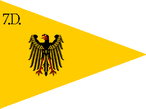 A triangular pennant, on a golden ground the black eagle of the coat-of-arms in the center; in the canton the number of the division in black arabic numerals and the letter D, e.g. '7.D.'. There were seven (infantry) divisions; as an example I show the 7th, as this was based in Munich. Source: Dreyhaupt 2000 [drh00].
