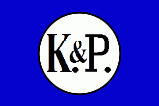 The flag was blue, in centre a white disc with black rim and black serifed inscription "K. & P.".