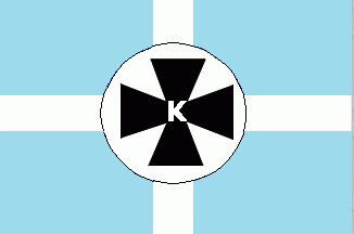 It was a blue flag divided by a yellow saltire with a small, black "K" in the centre of the saltire.