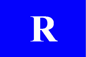 It was a blue flag with a white, serifed initial "R" in the centre.