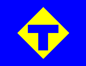 The flag was flag blue with a yellow square diamond charged with a blue "T" in the middle.