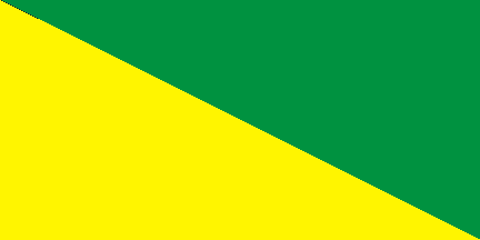Smith reported green over white. I posted diagonally upper hoist to lower fly, yellow and green. Flagmaster 60 reported the same but lower hoist to upper fly, green at hoist and yellow at fly. Prof. Restrepo said that the flag was changed to horizontal W-V-Y but that was never confirmed.