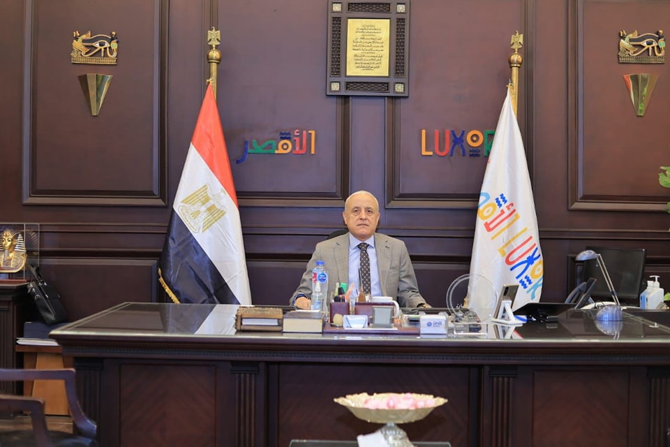 The city and first governorate coats of arms show a boat floating on the Nile, on it the famous obelisk of Luxor and the death mask of Tutankhamen.