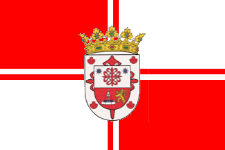 The flag (photo, photo, photo, photo, photo) is quartered red and white by a white-red / red-white cross, superimposed by the municipal coat of arms. Red and white are the colors of the Order of Saint James.