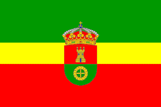 Coat of arms: Per fess, 1. Gules a three-donjonned tower or masoned sable ports and windows azure, 2. Vert a watermill wheel or. The shield surmounted by a Royal Spanish crown.
