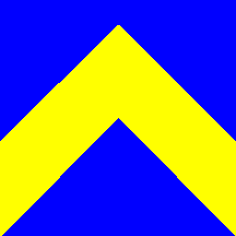 Flag: Quadrangular flag, with proportions 1:1, blue with a golden chevron.
