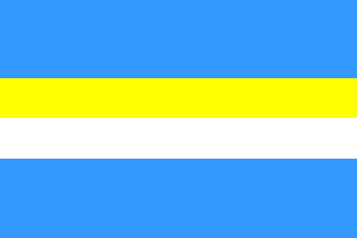 The flag hoisted over the Aulan castle (photo) is horizontally divided blue-yellow-white-blue.