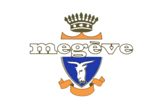 The flag of Megève is white with the municipal logo in the middle. A new logo was adopted in 2009 and the flag was changed accordingly: photo (2024).