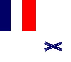 The personal flag of Marshal Alphonse Juin (photo, Infantry Museum) is white with the French national flag in the canton (like the modern Marshal's flag), the batons in the middle of the white stripe of the canton, and seven blue stars, placed 1-2-1-2-1, in the fly side.