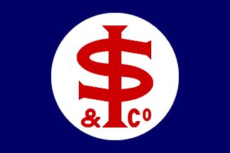 A blue flag with a white disk centred, bearing the overlaid IS logo. Instone