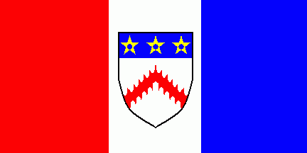 The flag is red-white-blue vertical tricolour with thinner white stripe. In