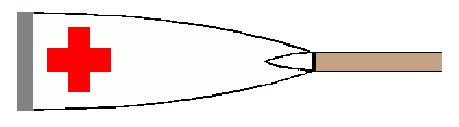 Blade is white with red Greek cross, i.e. the flag pattern.