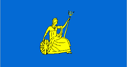 It is a rectangular burgee. In the blue field is a yellow Britannia slightly