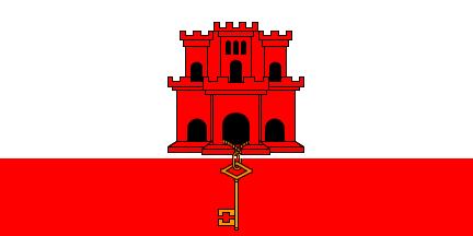 I was on a recent visit to Gibraltar in August 2003, the week before the national holiday. Upon entering the colony, there was a set of three poles flying an European Union, United Kingdom and Gibraltar flag on each just across the border from Spain. The Gibraltar flag had no details on the castle. There were no gates or openings in the wall. It was just a solid-red, castle-shaped blob.