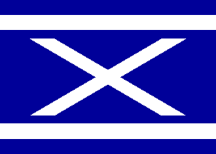 This is significantly different than the two other Chadris houseflags we show on our site, with the letter "Χ" (chi) here being idealized as a simple geometrical shape, and not a more recognizable typographic outline. Maybe this is an earlier version (this source, undated as it is, seem to be surely earlier than 1995), later modified to reduce the risk of confusion with the Scottish and Mike flags?