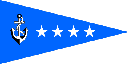According to Album 2000 [pay00] - Captain (1:2) - Triangular blue pennant with white anchor near hoist and four white five-pointed stars in a row towards the fly.