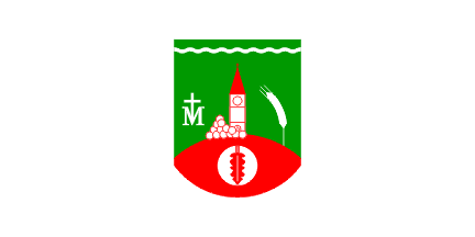 A variant once shown on the municipal website has a white Marian cypher on the right of the church.