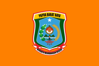The flag for Papua Barat Daya is their emblem on an orange background. The province was formed from West Papua by a government decision in December 2022. The symbols were presented to the Ministry of Home Affairs on 15 May 2023.