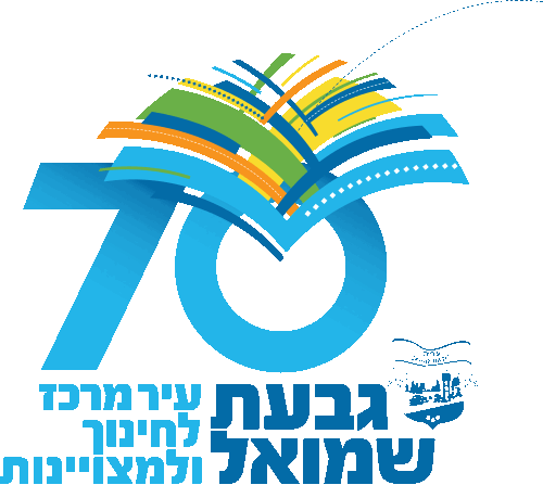 Logo for 70th anniversary. Inscription: עיר חדכז לחינון ולמצויינות (City dedicated to education and excellence).
