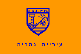 Keywords: nahariyya | iriyat nahariyya | text: hebrew (white) | coat of arms (landscape: blue) |