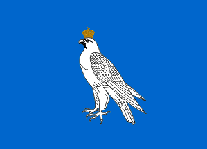 white Icelandic falcon, crowned with the Icelandic crown, and facing the hoist. The relationship between the breadth and the length of the flag is