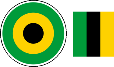 Air Wing of Jamaica Defense Force was formed in 1963. The roundel is "classic" black yellow green. Concering the fin flash I reported in that the fin flash s black-yellow-green, while Željko reported green-black-yellow (source: [cos98]). Checking <www.jdfmil.org> revealed the Željko (and [cos98]) is correct.