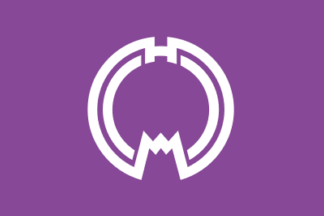 The town emblem was adopted on Sep 30th 1990 but there is no flag law. The purple flag has a white town emblem in the center. The town emblem is a stylized hiragana り Ri and H. The circle symbolizes the sun disk, the double circle does a concord. and the letter り does a conjugation. The lower part represents Mt. Rishirifuji and the upper H is an initial of Hatten (development), Hiyaku (surge), Heiwa (peace) and Hojyo (abundance).