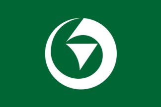 The town emblem was adopted on Oct 1st 1967 but there is no flag law. The green flag has a white town emblem in the center. The outer circle is a snake-shaped river which symbolizes the town’s future progress and the town people’s reconciliation and collaboration. The center stylized katakana ノ No represents the progress of the grain belt and the promotion of the dairy industry and the upper chevron does an ideal world.