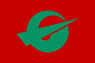 The flag of the former town of Johoku was blue with mark. The town is now,