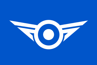 kanji 甘Kan and katakana ラ Ra in a form of a flying pigeon as symbol of peace.