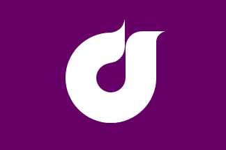 Higashikurume city adopted its emblem on 1 October 1970 by Notice No. 1. flag proportion: 2:3. colour of field: purple. colour of emblem: white diameter of emblem: 3/5 flag height, a stylized hiragana Hi ひ